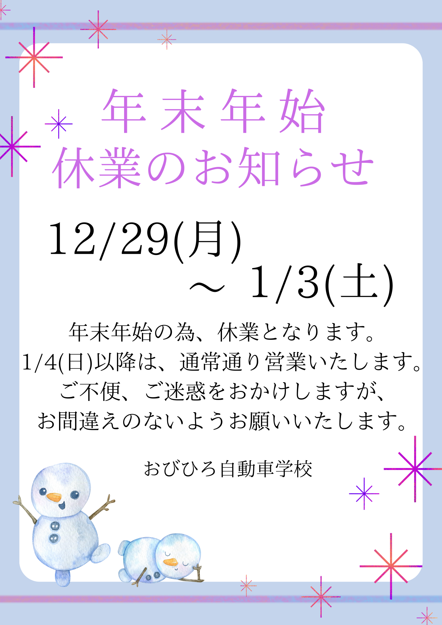 トップページ > インフォメーション > 年末年始営業日のお知らせ
